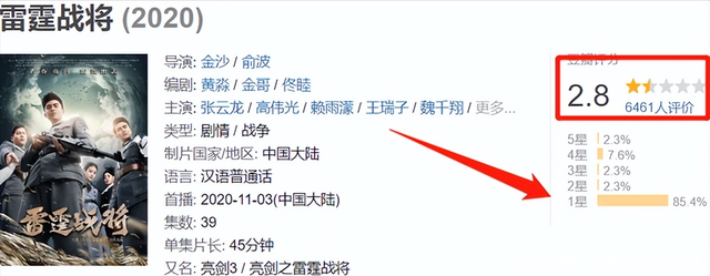 然而“雷声大,雨点小”令东谈主大跌眼镜的是这部《雷霆战将》的评分只是只好2.8。 一度破裂了畴昔影视剧的最低评分范例。 况且这部抗日神剧当中的剧情以及东谈主物变装的塑造险些让东谈主辣眼睛无法直视。