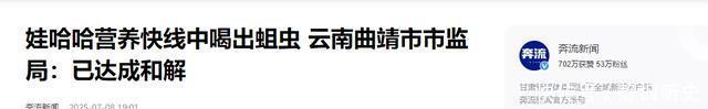 奔流新闻,2025-07-08,娃哈哈养分快线中喝出蛆虫云南曲靖市市监局:已结束妥协